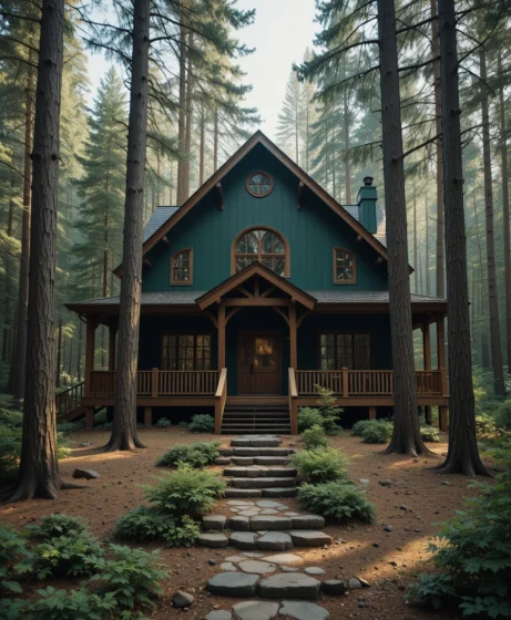 A forest green exterior blends beautifully with natural landscapes, especially in wooded or rural areas. The dark green shade creates a calm and earthy look.