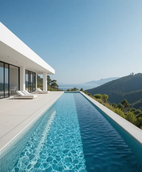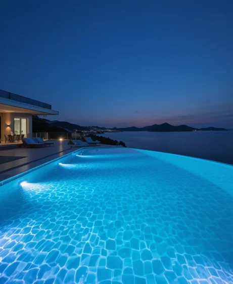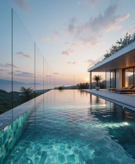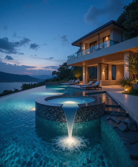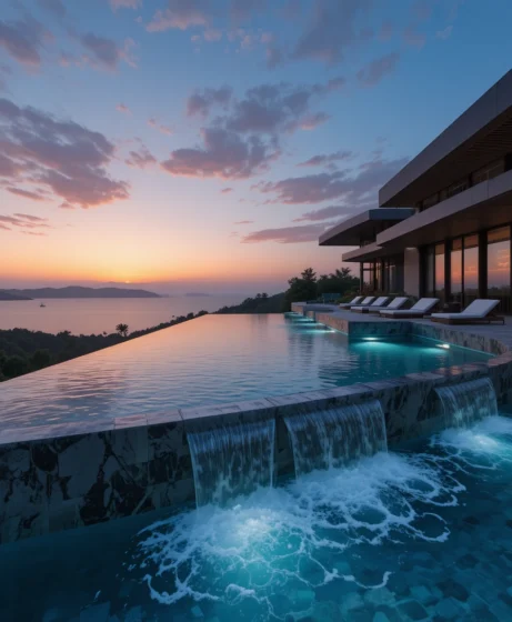 I’ve noticed that infinity swimming pool designs are highly sought after because they combine luxury, elegance, and a sense of boundless space. The visual effect of water merging with the horizon creates tranquility and dramatically enhances the property’s aesthetics.