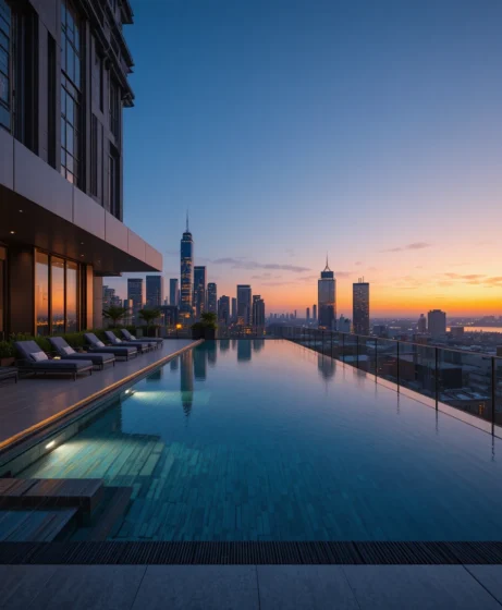 A rooftop pool offers a unique perspective. I picture skyscrapers in the distance and lounge seating along the edge. It combines urban sophistication with the calming effect of water.