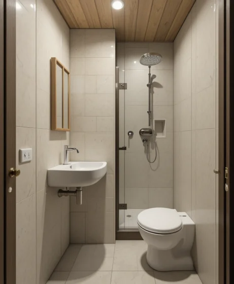 Compact Japanese bathrooms use corner showers and wall-mounted sinks. I picture clean lines and light tiles for a simple yet elegant look. It feels functional and comfortable.