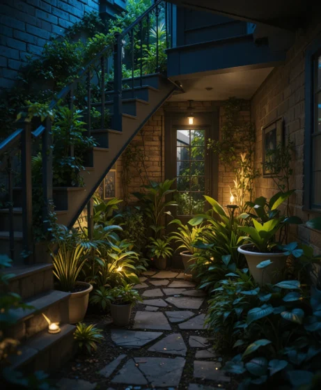 I install warm LED lights to highlight the plants. It creates a cozy glow, especially at night. This makes the under stairs garden feel like a secret retreat.