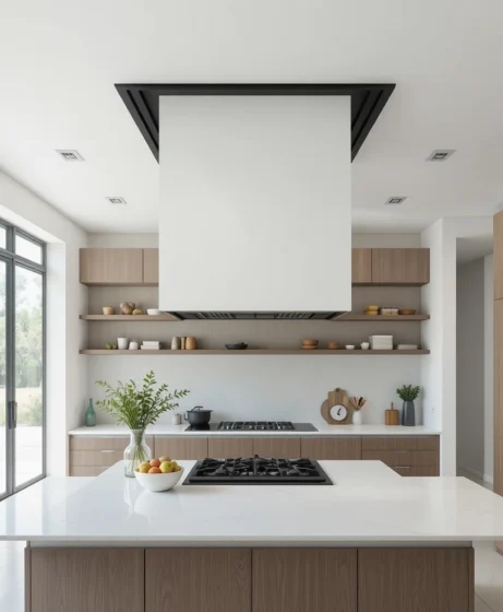 This design keeps the kitchen open and unobstructed while still providing strong airflow. It works beautifully in modern homes with sleek and minimalist aesthetics.