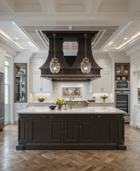 A vent hood over an island is more than just a practical kitchen feature. It becomes a central design element that defines the style of the entire cooking space.